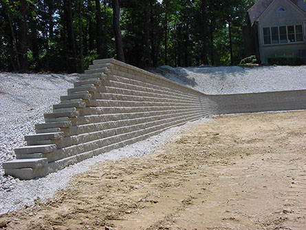Being able to build modular retaining walls vertical is a good option to have. Sometimes property restraints dictate it. Sometimes a vertical application simply looks better, as with a retaining wall with internal stairs. These are options that are available with GeoStone and its lack of limitation but these are only a handful amongst many. Please visit our video section as well as our Technical Section (especially the 3D Renderings!) to see the other such advantages of the GeoStone retaining wall system. You will find as have many landscape professionals, weekend wall builders, large commercial wall builders, and hardscape products manufacturers that GeoStone Retaining Wall Systems is the best modular retaining wall system on the market.