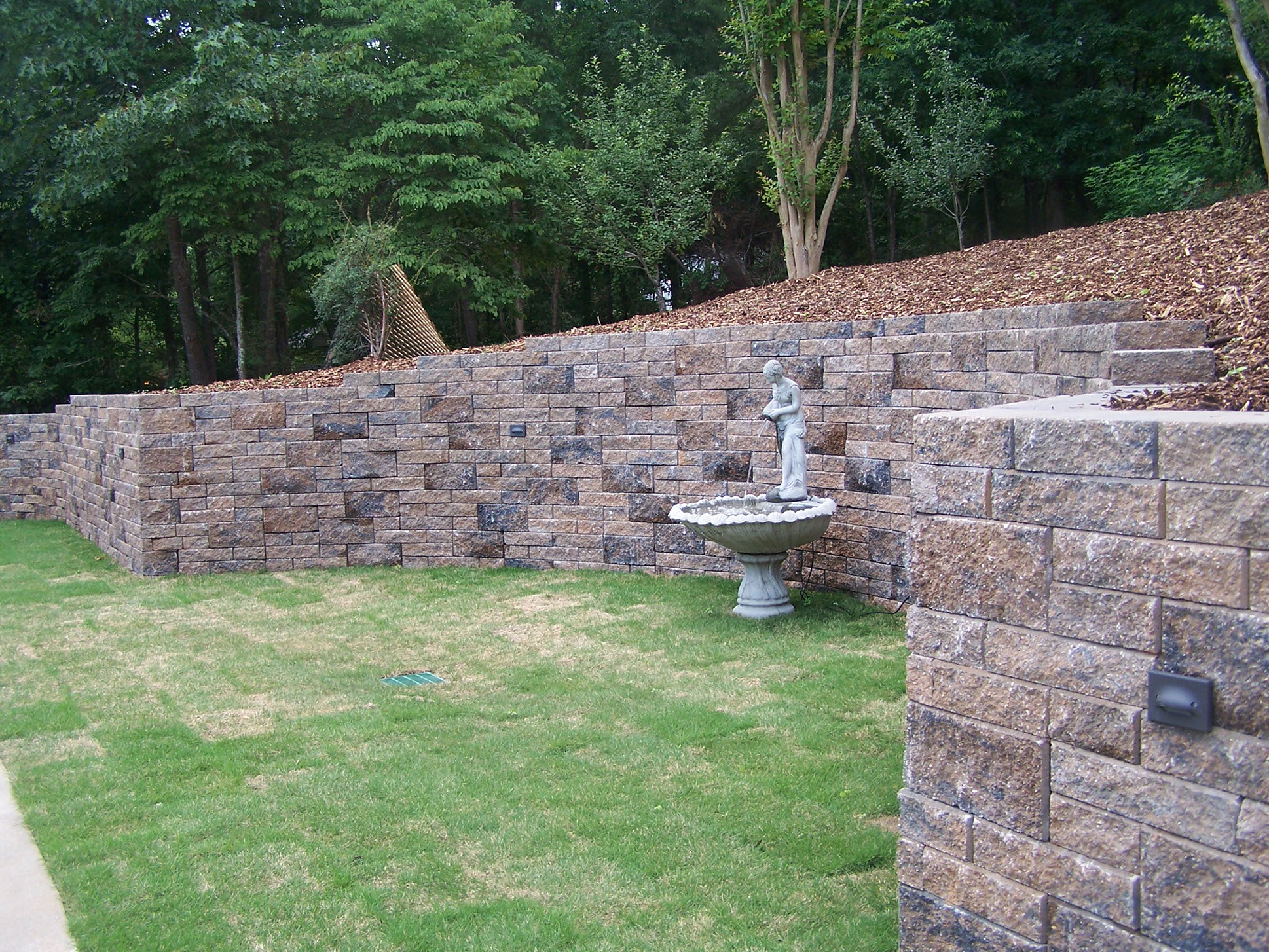 The GeoStone G12-4 block was originally created as modular retaining wall system to fill in the "gaps" between the larger wall modules and the mainly decorative small blocks found at the retail or "box stores". This module is identical to its larger version with the only exception being height and weight (36 lbs). Its method of connection is identical as well, making it the strongest 4 inch retaining wall module on the market. This connection method which we call "Rock Interlock" allows the two modules to be mixed in to the same wall in either a true ashlar (random) pattern or banding. The GeoStone G12-4 block can be easily maneuvered and handled. It's lesser weight allows for 1 block to be carried in each hand. It also makes placing and positioning much easier in radius and footing stages. A very common argument we get is that it takes twice as many. True, but walls are typically built much faster with this product than its heavier predecessor. This has much to do with the stamina of person building the wall. They do not wear out as quick. The main reason however, is due to the building technique used to place this product which can be seen here.