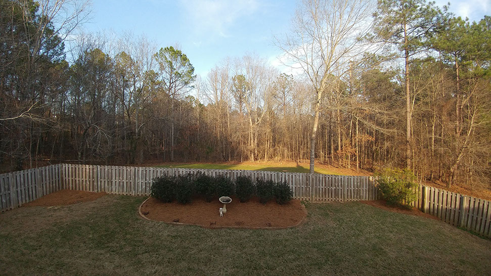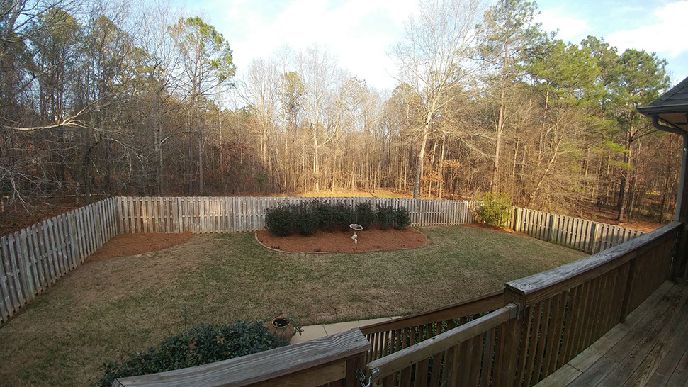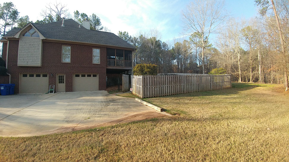 This house had a big back yard with a fence that encompassed a relatively small portion of it. Hedges hid a large space under the deck that was not being used.