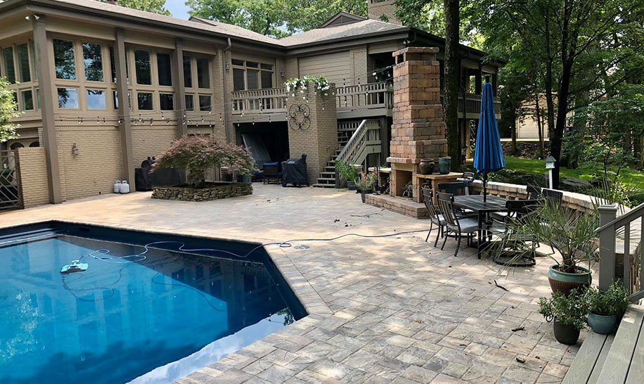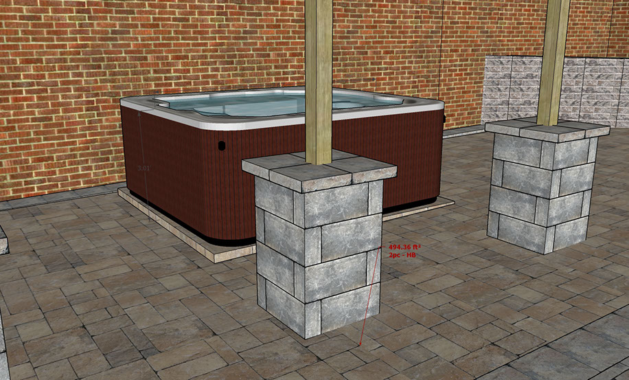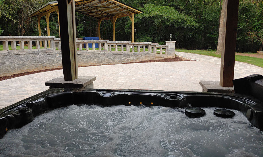Pavers under spa had to be leveled in a cut-out section. This will allow spa to sit level and still let pavers slope to drain as specified by ICPI.