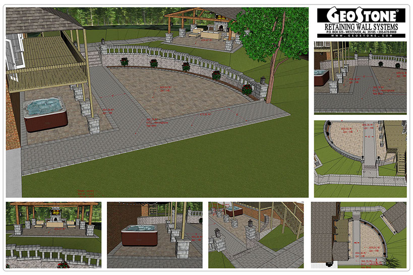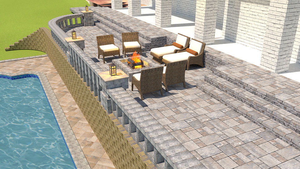 Retaining Walls are an intricate part of the design process. Walls create usable property, thus giving the designer a good canvas to create art. The delicate balance of beauty and functionality is where a good design comes into play. A structural design is the backbone of the project and the 3D design shows how it will all interact. A combination of the two is rare but when properly utilized, it makes for an amazing showcase.