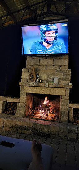 Modular kitchen with Modular Fireplace and matching fence-wall.