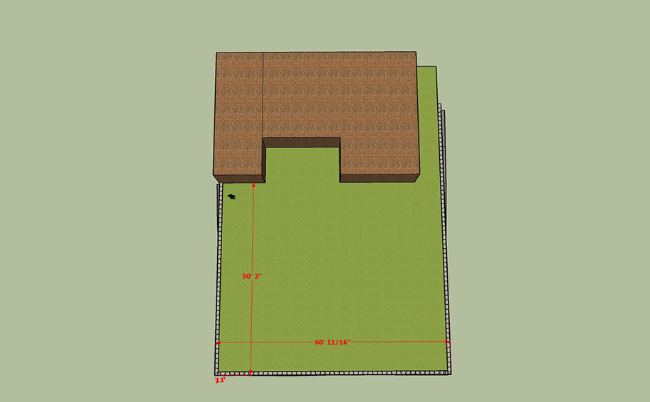 New dimensions of leveled out back yard can now be calculated for features and landscape plan.