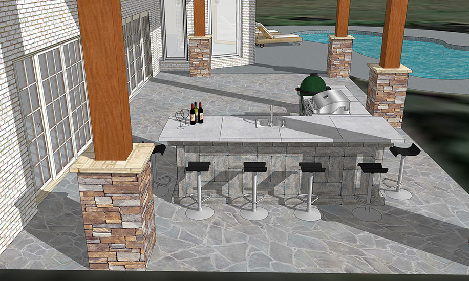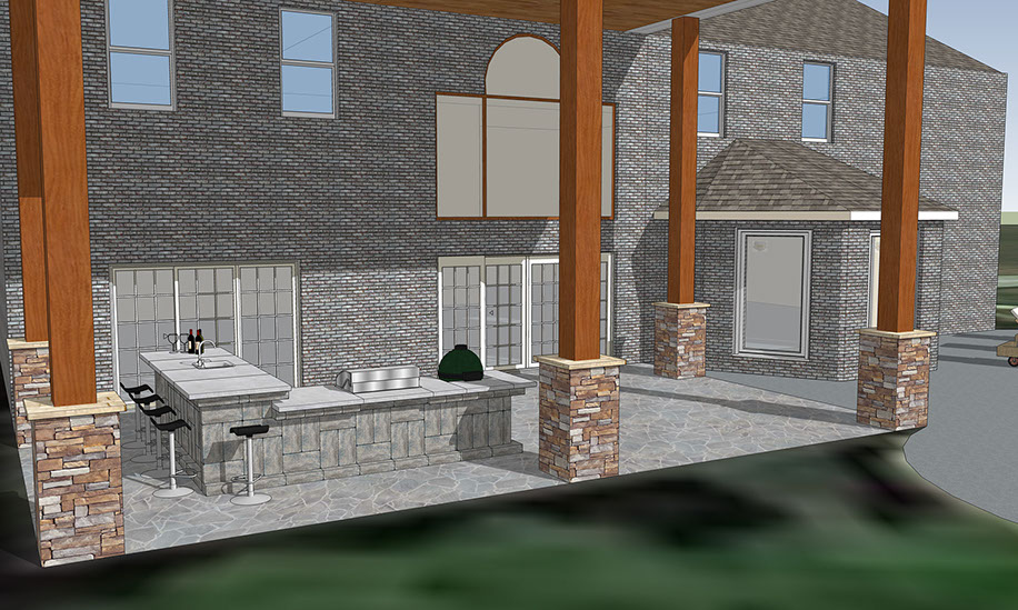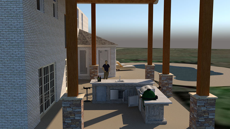 Based on dimensions provided and structural design, we were able to perform 3D design to give homeowner and idea of what their back yard would look like.