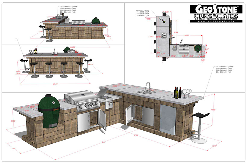 Custom design for outdoor kitchen - option 2 - add Big Green Egg
