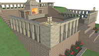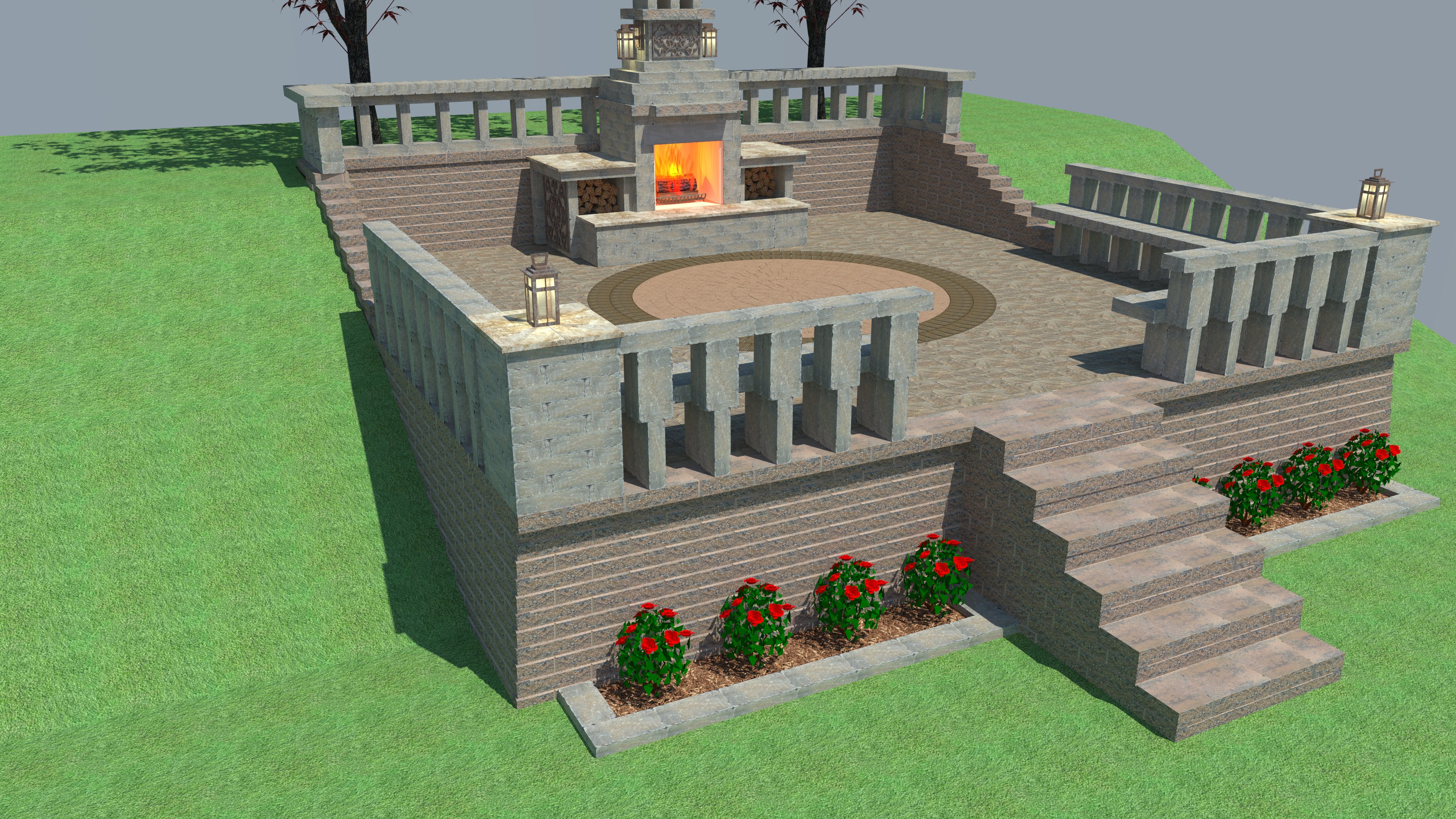 GeoStone retaining walls used to build patio into slope or hillside. Slope is cut into and material is removed to be placed later. GeoStone interior retaining wall is constructed to retain cut (top wall). Lower GeoStone exterior wall is constructed to place and retain material cut out of slope to create level patio application.