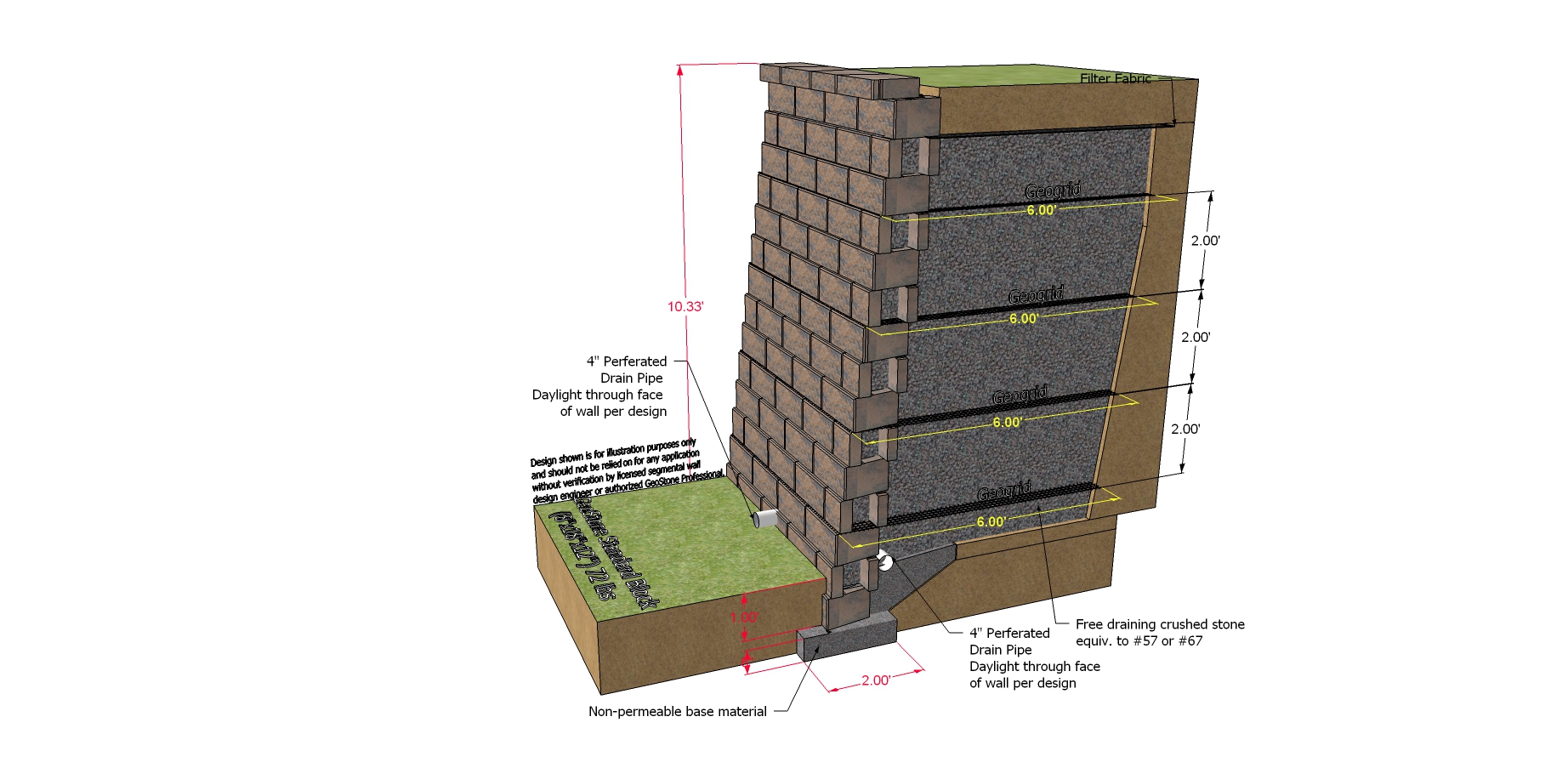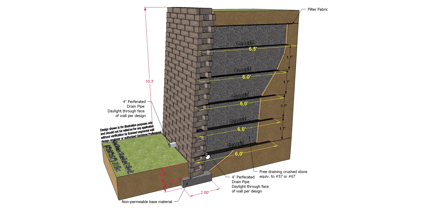 GeoStone Landscape (4"x18"x12") - 10 ft cross section (generic design)