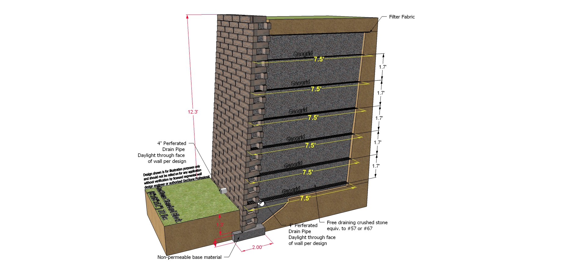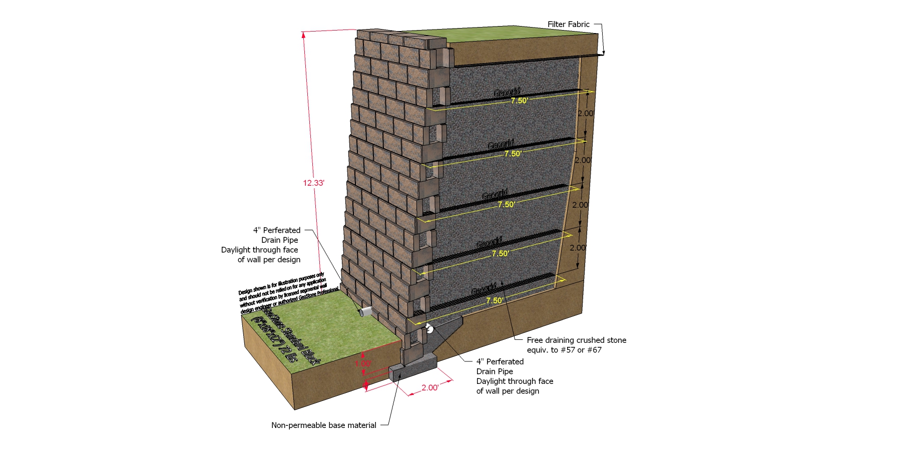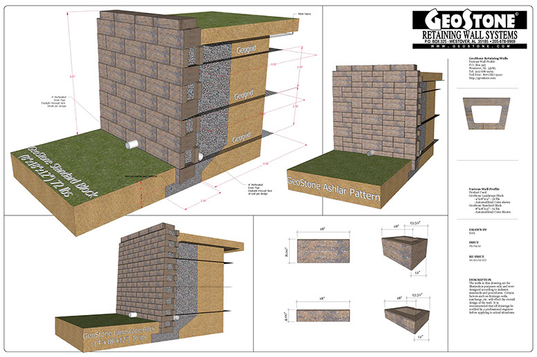 GeoStone Landscape (4"x18"x12") - 12 ft cross section (generic design)