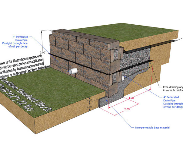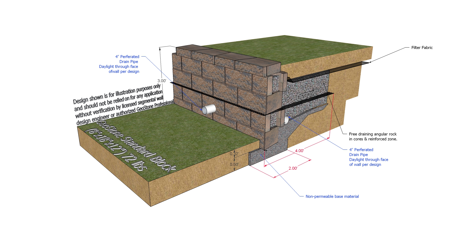 GeoStone Standard (8"x18"x12") - 3 ft cross section (generic design)