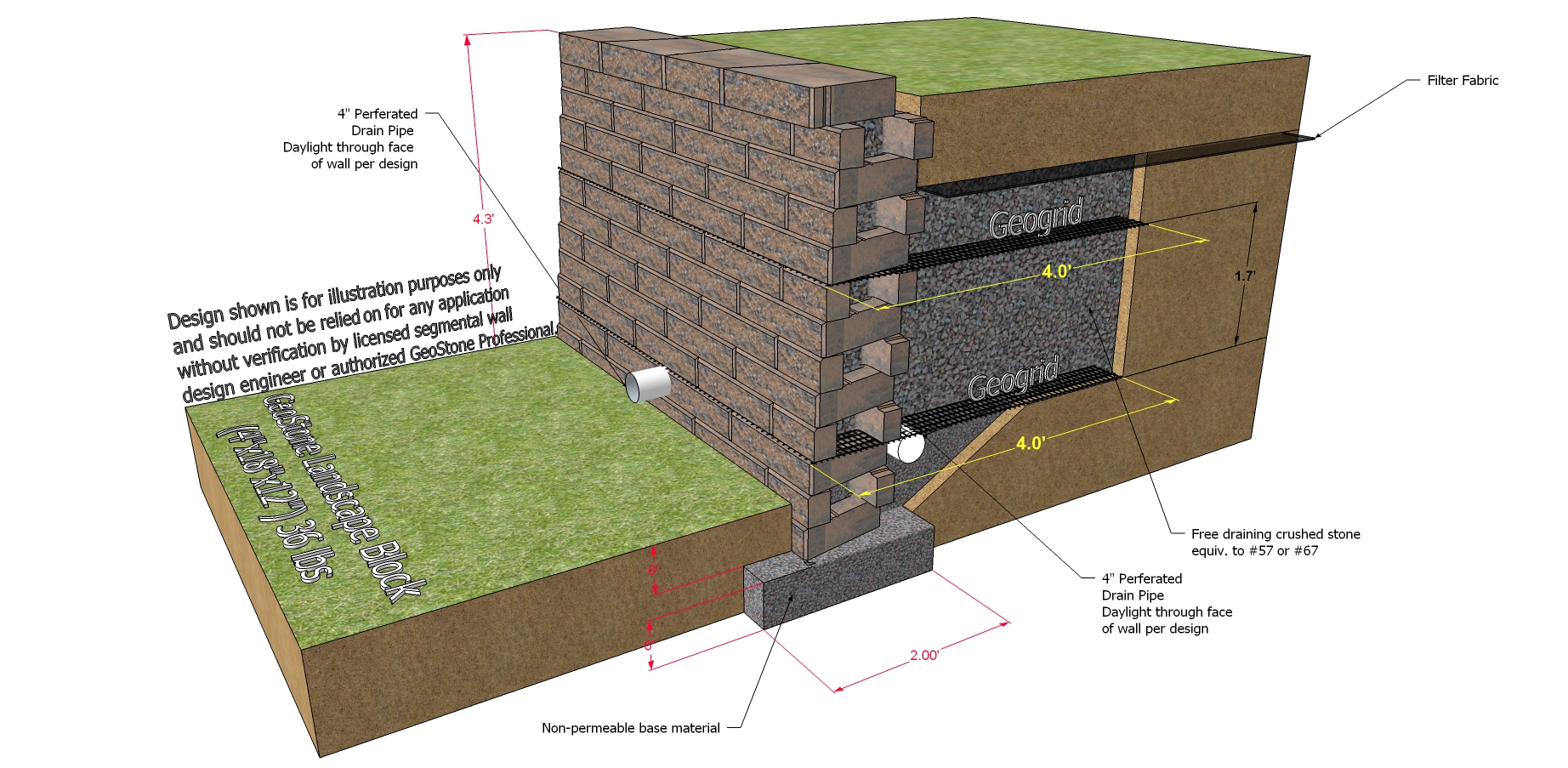 GeoStone Landscape (4"x18"x12") - 4 ft cross section (generic design)