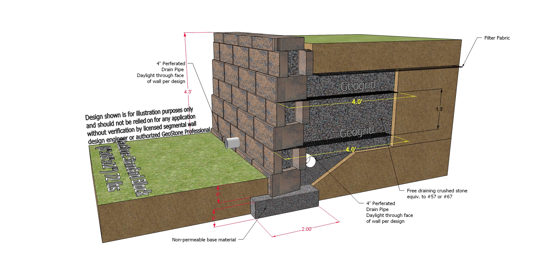 GeoStone Standard (8"x18"x12") - 4 ft cross section (generic design)