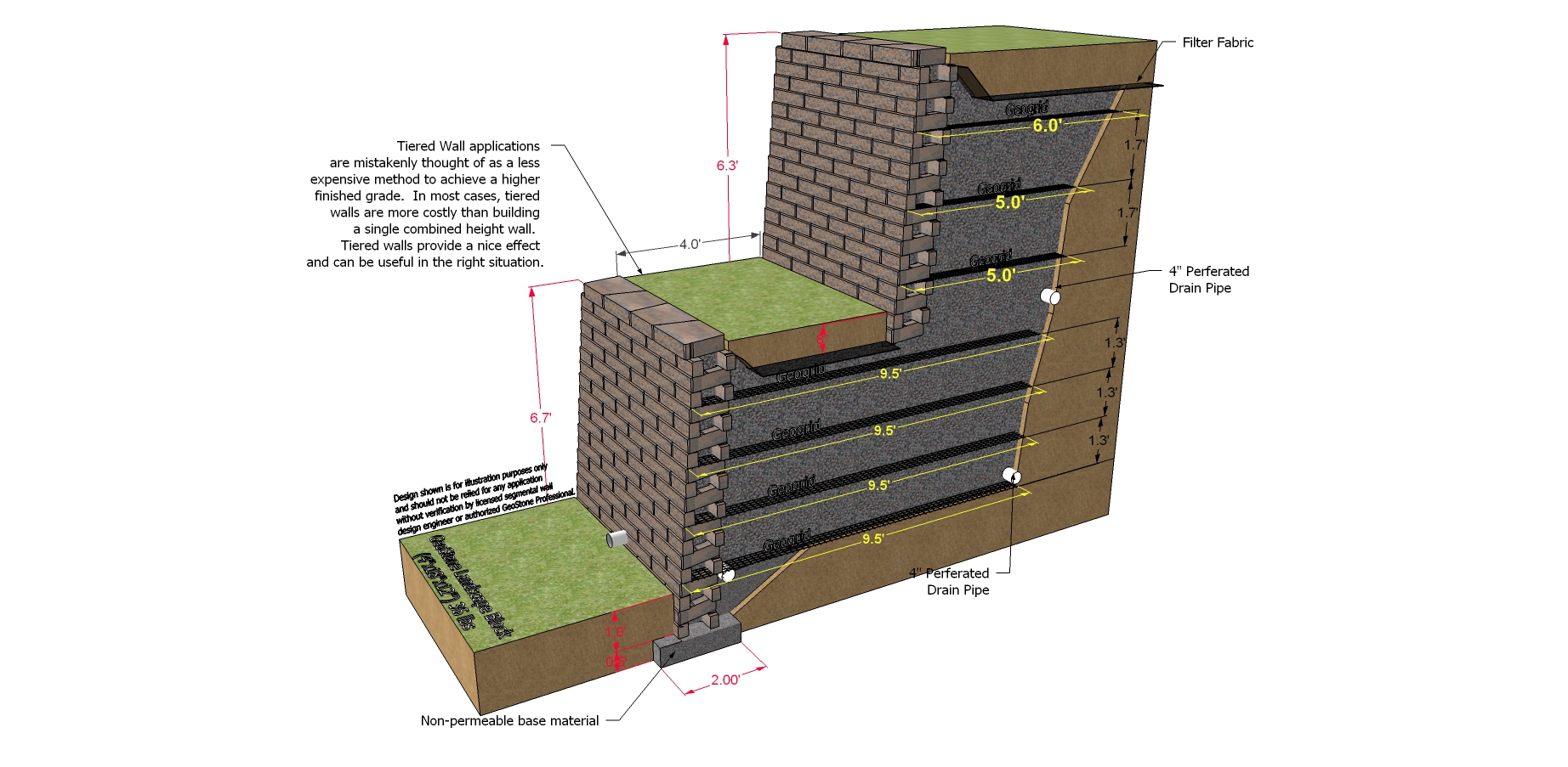 Tiered Wall Application - Top wall always creates surcharge on bottom wall unless distance between the two walls is over double the height of the bottom wall (2:1 rule).2