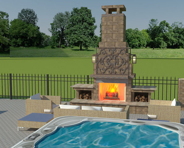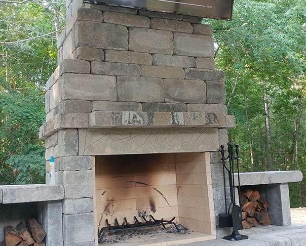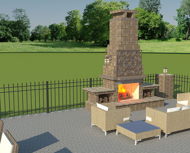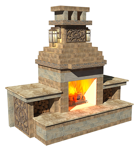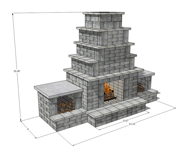 The Rumbleplace Grande is our latest design and our largest fireplace. As shown, the Grande is 13ft tall with a 40in fireplace opening. A more traditional look, this fireplace features intricate block layout and a much larger surface area for displaying decoration or an outdoor TV. The chimney section is made for variable heights depending on your need. Pre-cut kits are available in this design but are put together as needed. Elegance, beauty, functionality, and affordability are all wrapped up in one package with this outdoor fireplace kit. By far this is the best fireplace on the market.